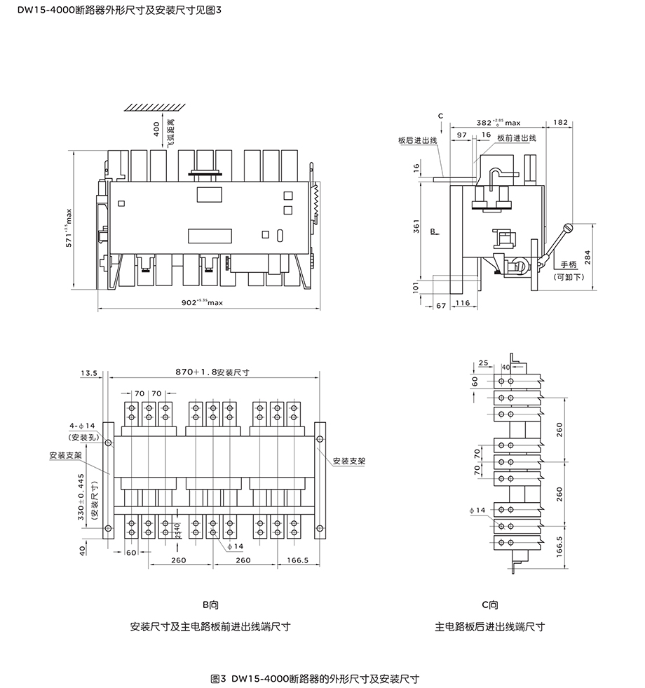 压至交流1140V/50Hz。本断路器主要在配电网络中用来作为分配电能及保护线路和电源设备