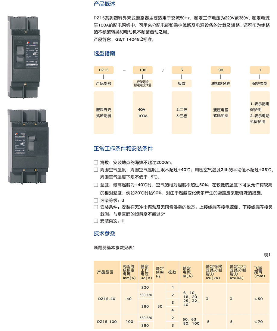 DZ15系列塑料外壳式断路器