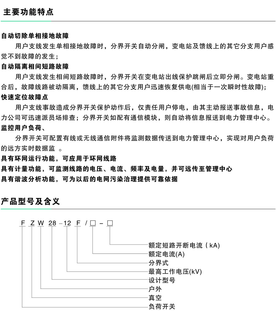 户外高压分界式真空负荷开关FZW28-12F/630-20电动(套管出线)