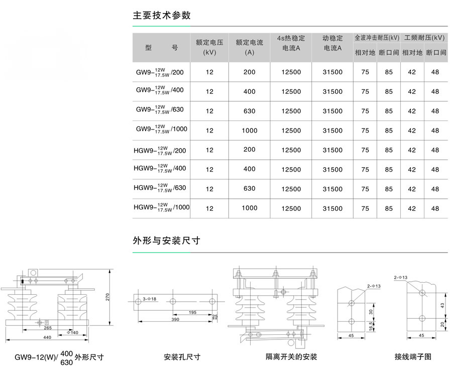 户外高压隔离开关 GW9-12kV/1000A(只)