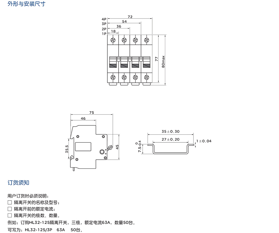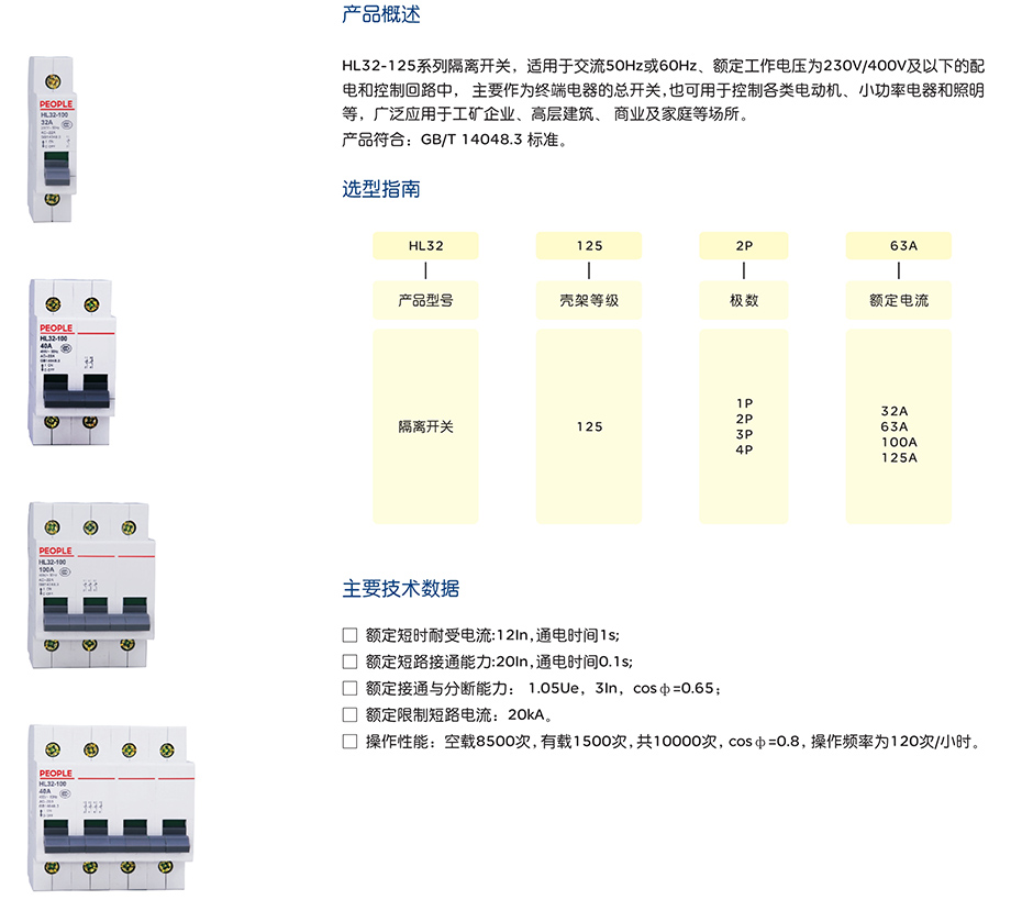 HL32-125系列隔离开关,适用于交流50Hz或60Hz、额定工作电压为230V/400V及以下的配电和控制回路中,主要作为终端电器的总开关,也可用于控制各类电动机、小功率电器和照明等,广泛应用于工矿企业、高层建筑、商业及家庭等场所。