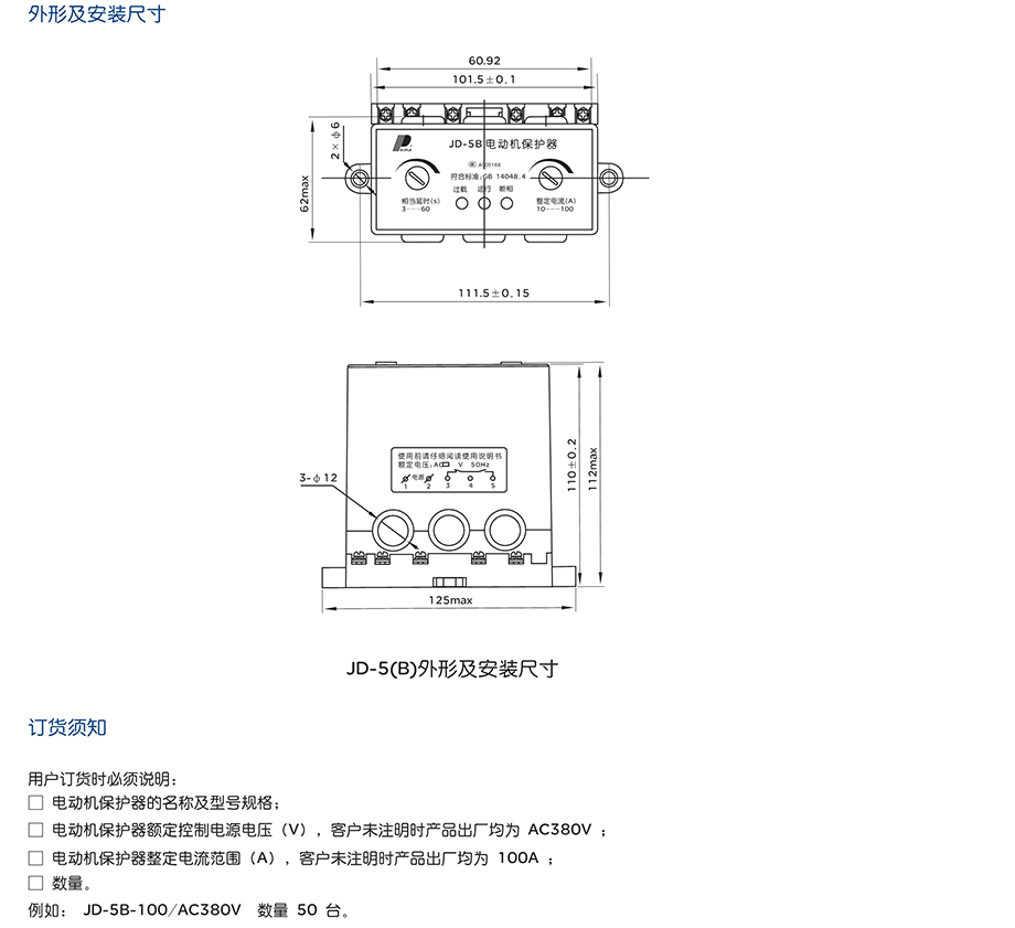 电动机综合保护器JD-5B10-100A AC220V(英文版)