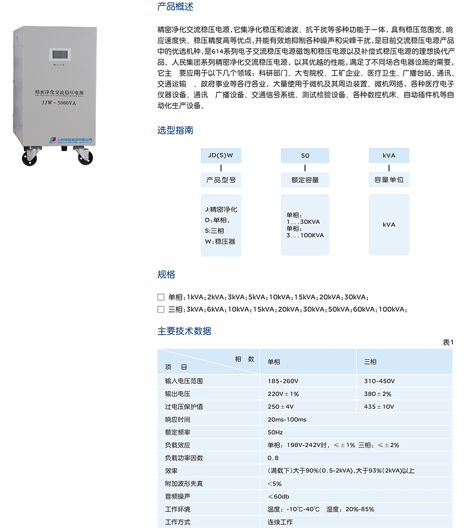 精密净化交流稳压器JJW-1kVA