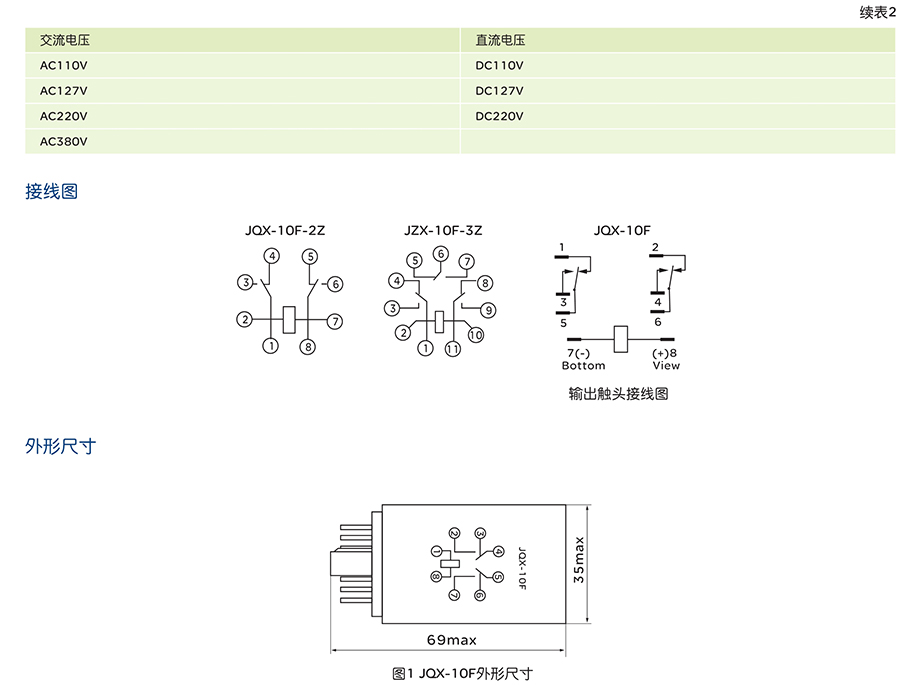 JQX-10F小型通用电磁继电器,作为控制电路中的控制元件用于接通或分断电路。