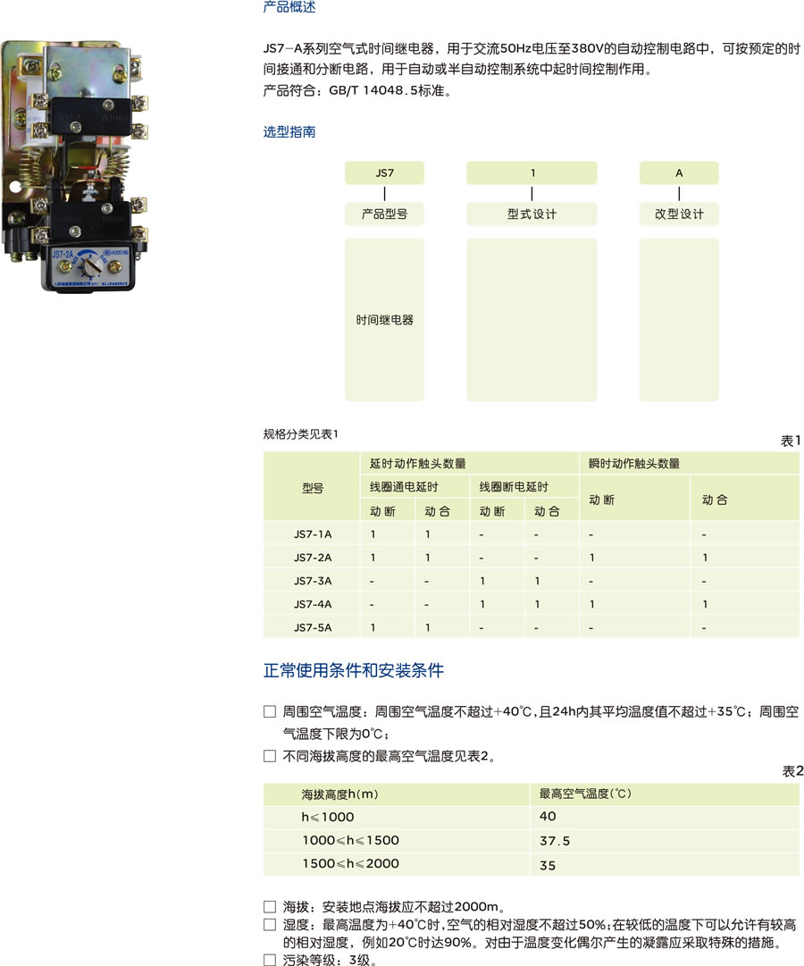 JS7-A系列空气式时间继电器,用于交流50Hz电压至380V的自动控制电路中,可按预定的时间接通和分断电路,用于自动或半自动控制系统中起时间控制作用。
