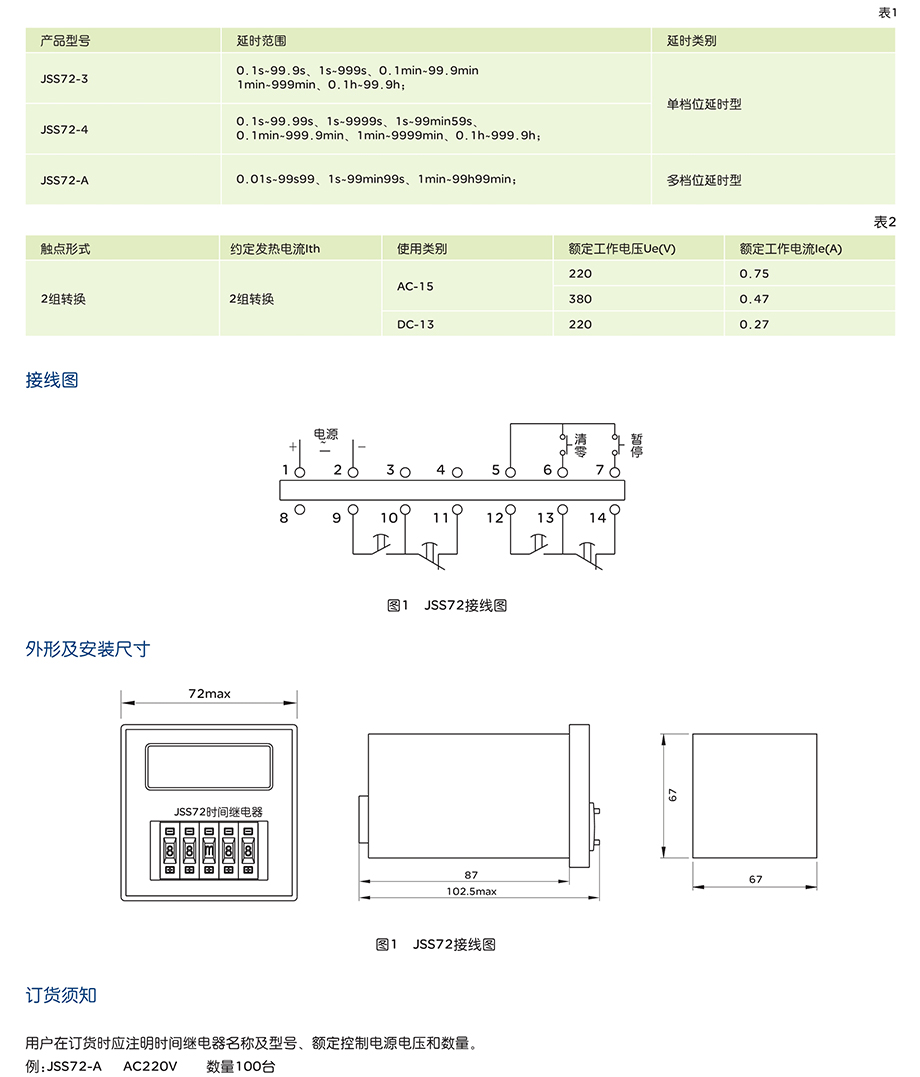 JSS72系列时间继电器属于通电延时型,适应于交流50或60HZ、电压380V以下或直流电压24V的工业自动化控制电路中作控制元件,按预定的时间接通或分断电路。