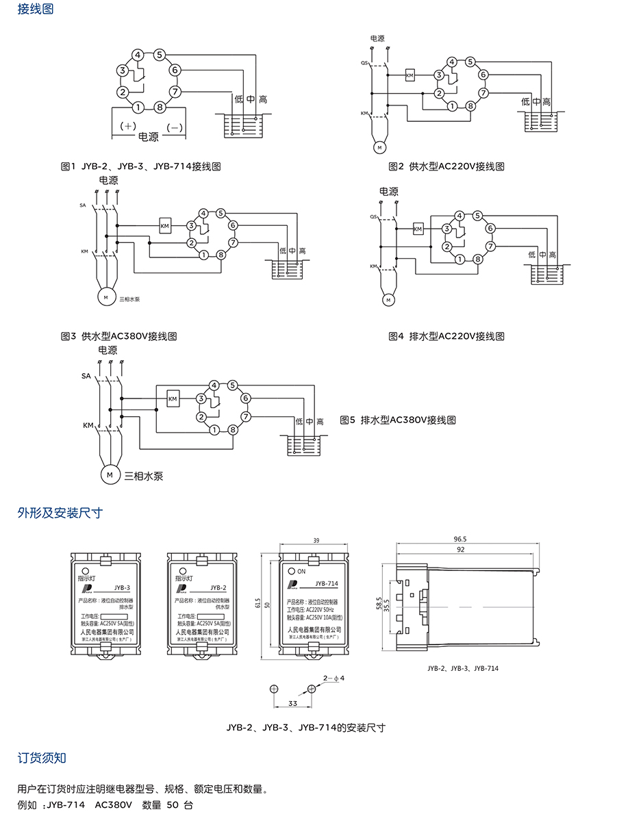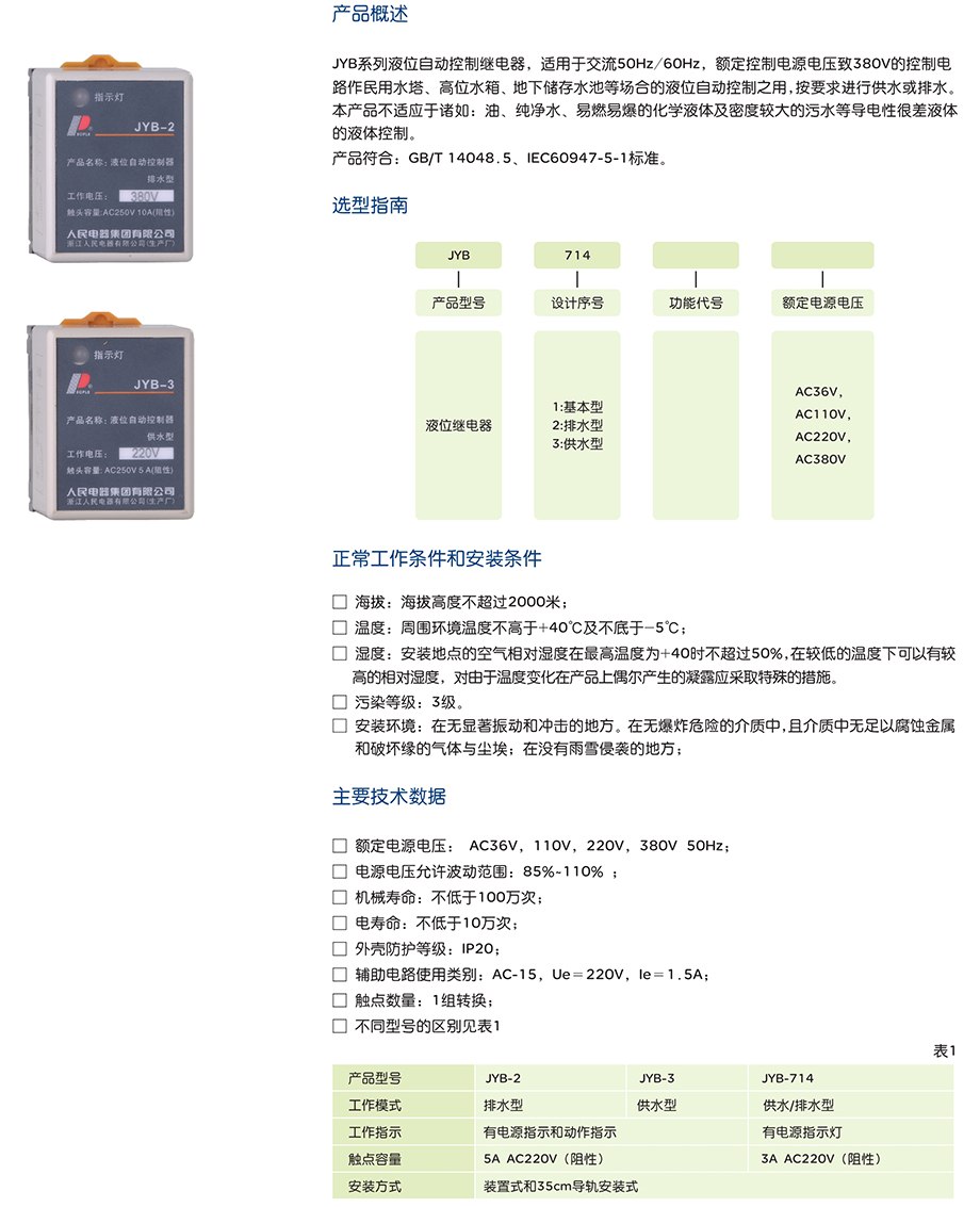 JYB系列液位自动控制继电器,适用于交流50Hz/60Hz,额定控制电源电压致380V的控制电路作民用水塔、高位水箱、地下储存水池等场合的液位自动控制之用,按要求进行供水或排水。本产品不适应于诸如:油、纯净水、易燃易爆的化学液体及密度较大的污水等导电性很差液体的液体控制。