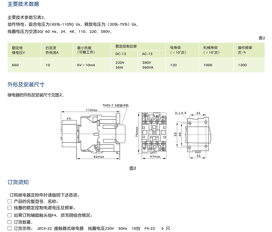 JZC4系列接触器式继电器主要用于交流50Hz或60Hz,额定工作电压至380V及直流额定电压至220V的继电控制、信号传递,信号放大等电路中,作接通、分断、放大之用。