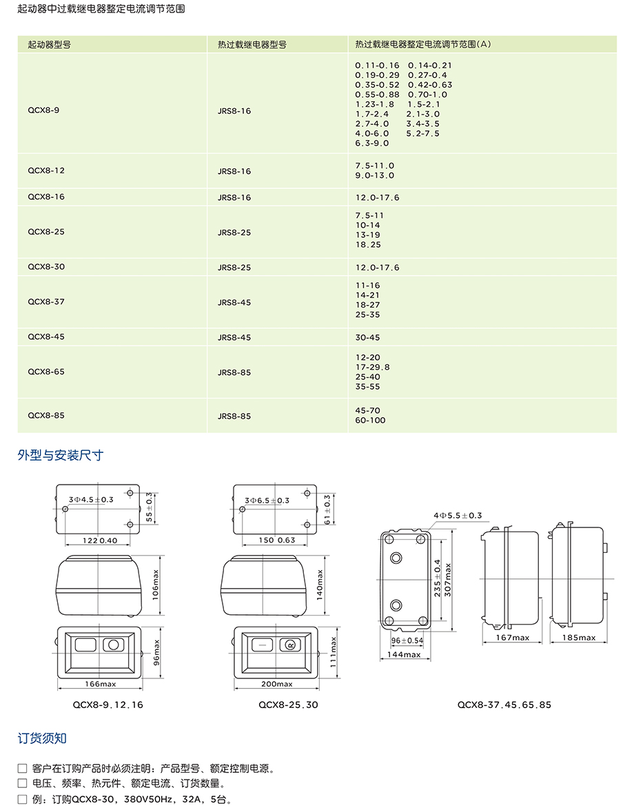 QCX8-9、12、16、25、30、37、45、65、85电磁起动器是引进技术而制造。