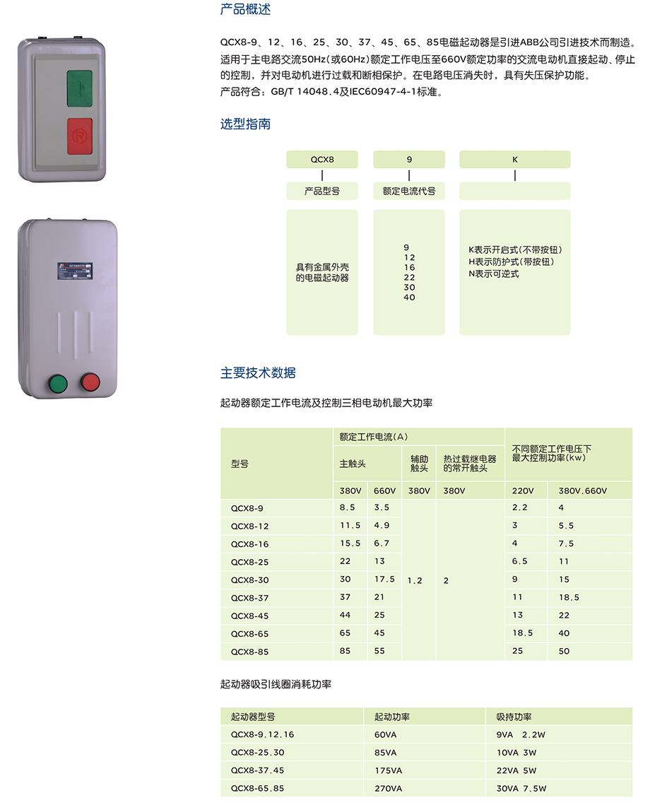 QCX8-9、12、16、25、30、37、45、65、85电磁起动器是引进技术而制造。