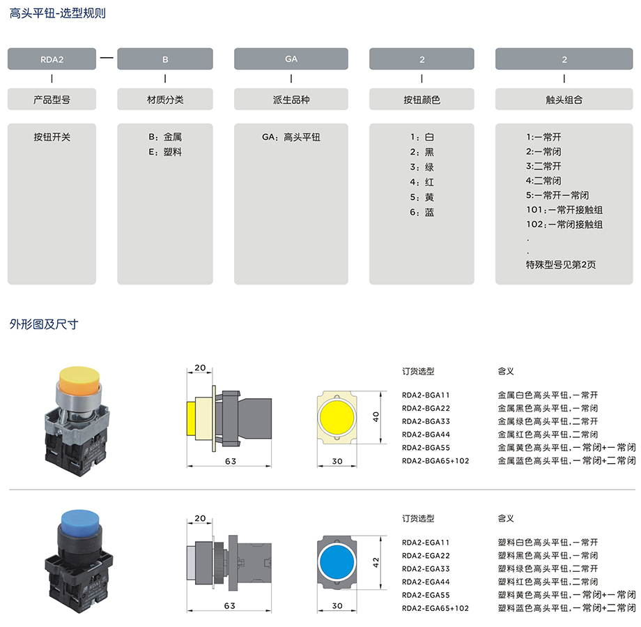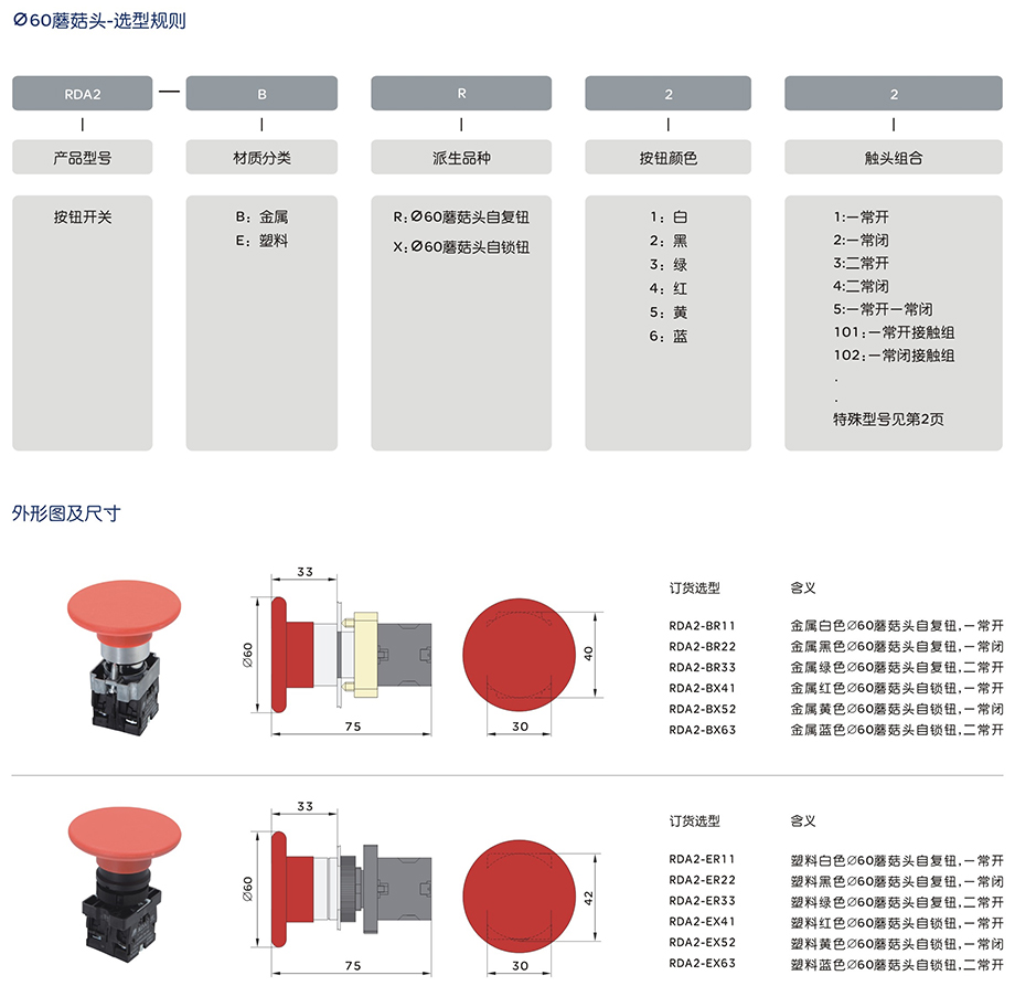 按钮RDA2-BJ221