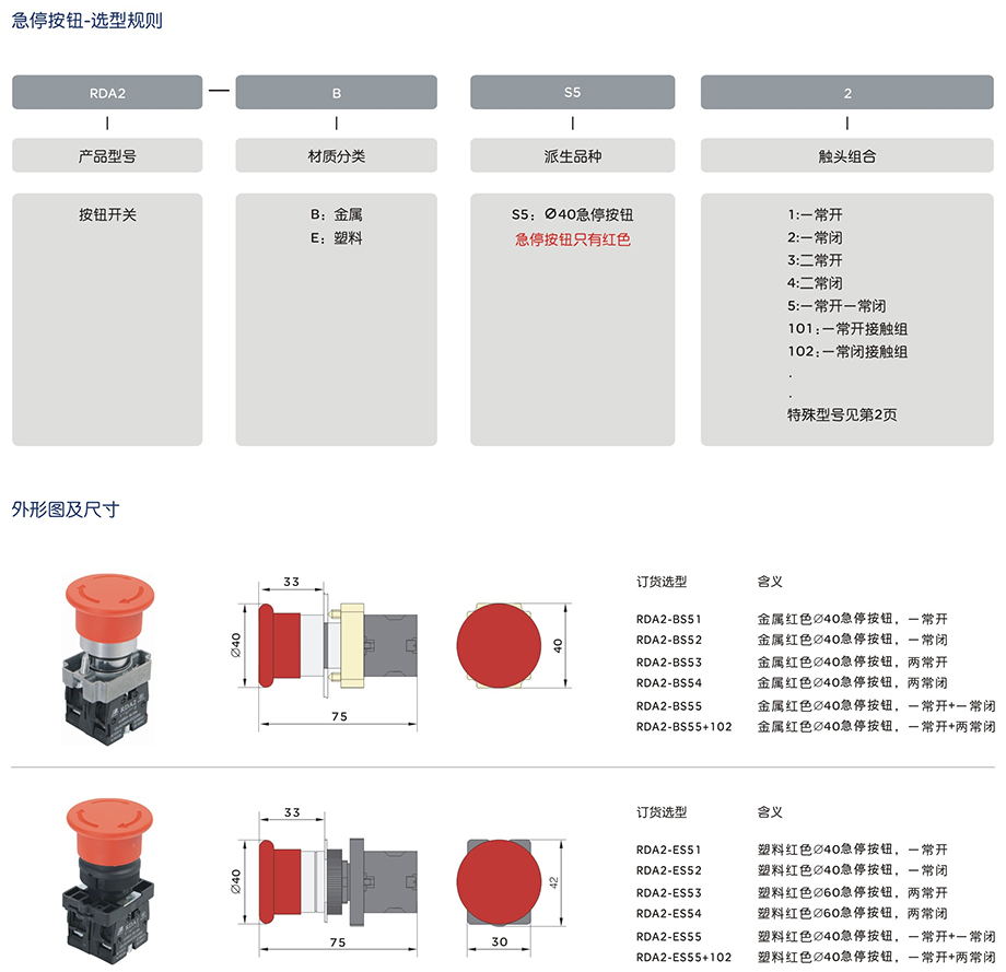 按钮RDA2-EJ325