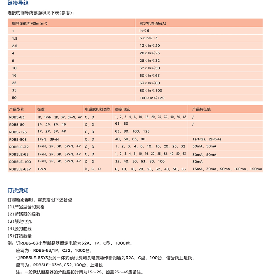 RDB5系列小型断路器主要用于交流50Hz,额定工作电压至400V,额定电流至125A,额定短路分断能力不超过10000A,还具有家用或类似场所用线路的过载和短路保护,在正常情况下作为线路不频繁转换的配电线路中。
