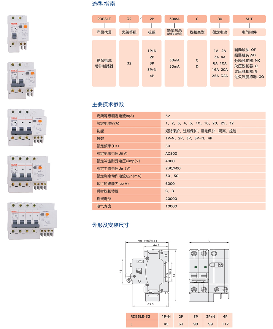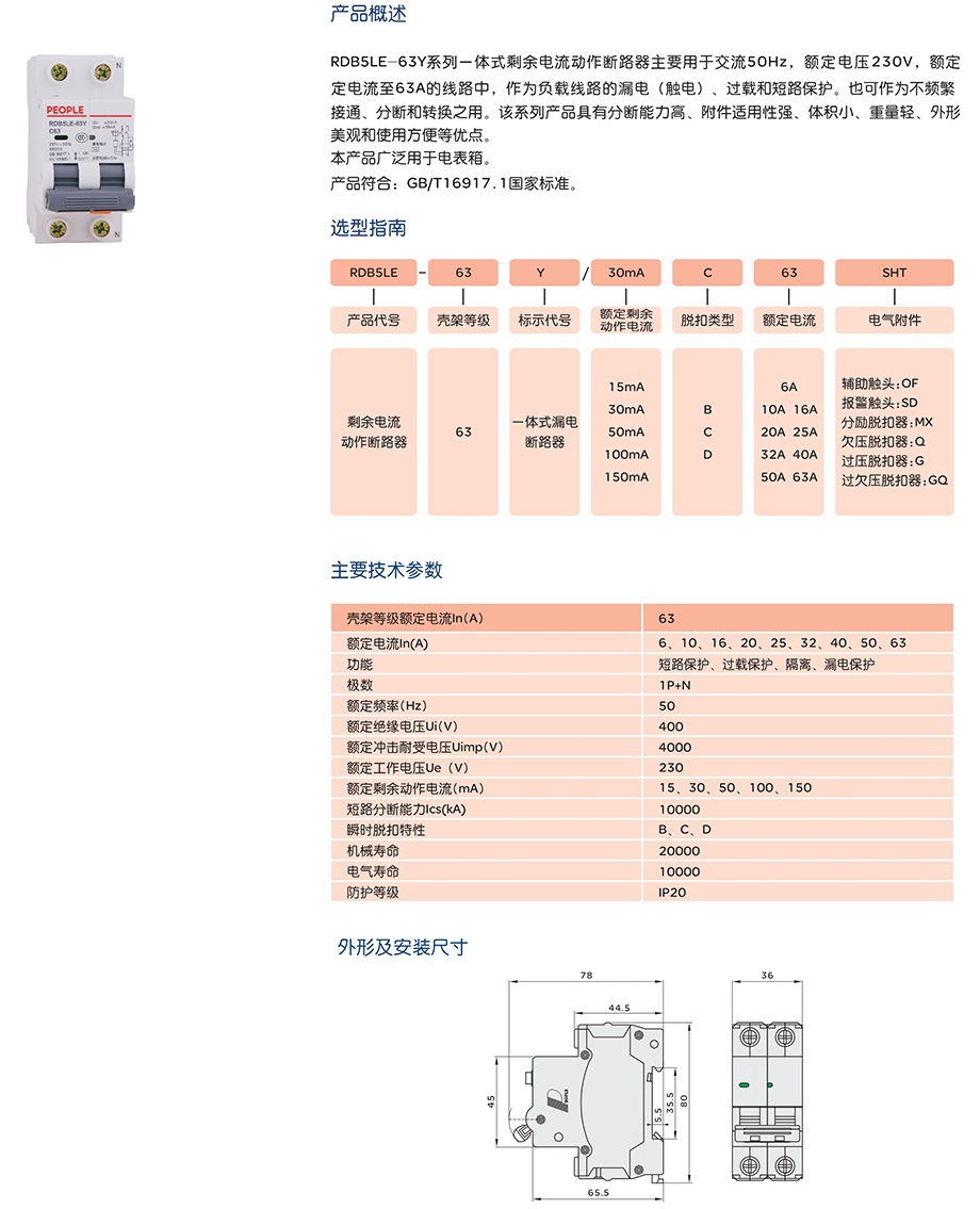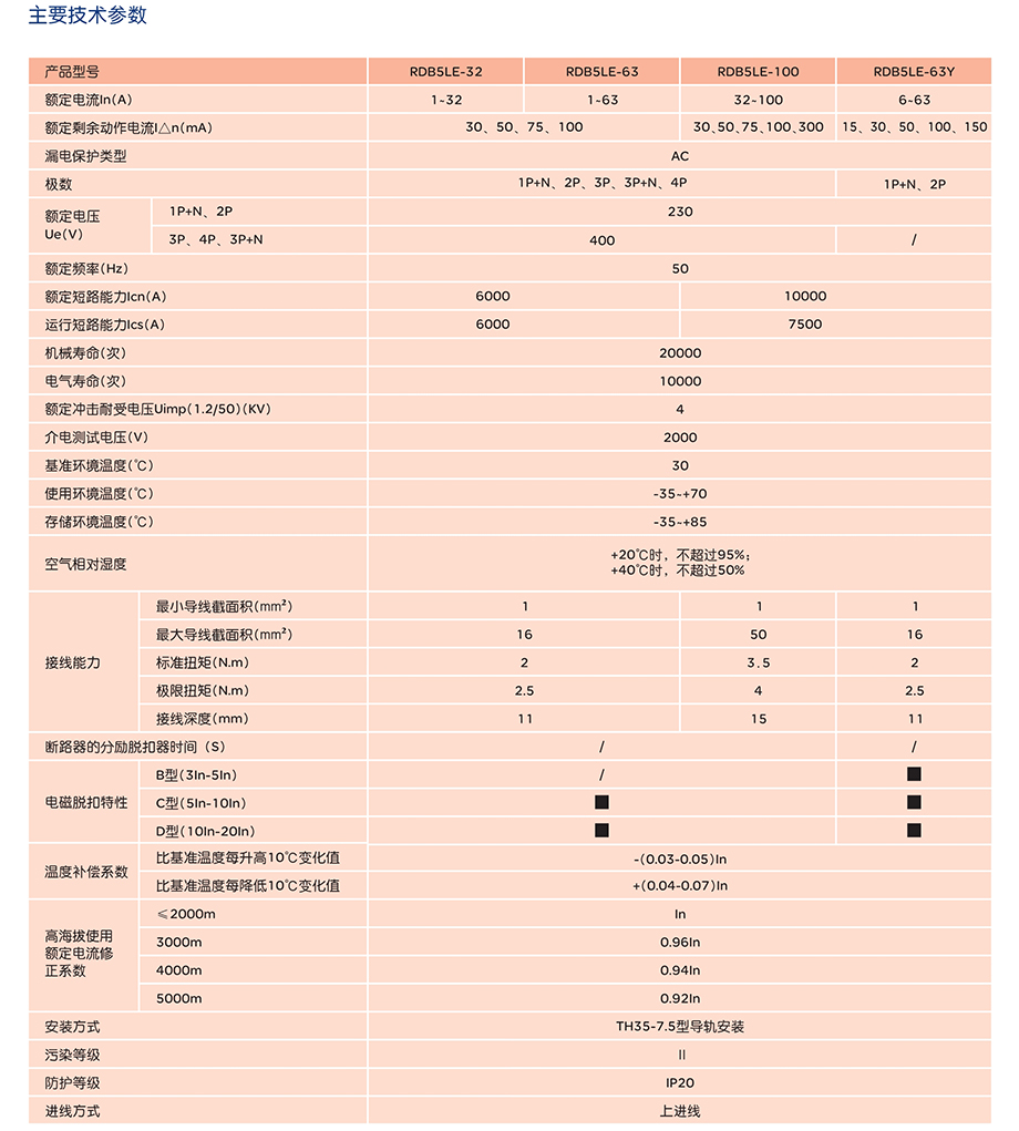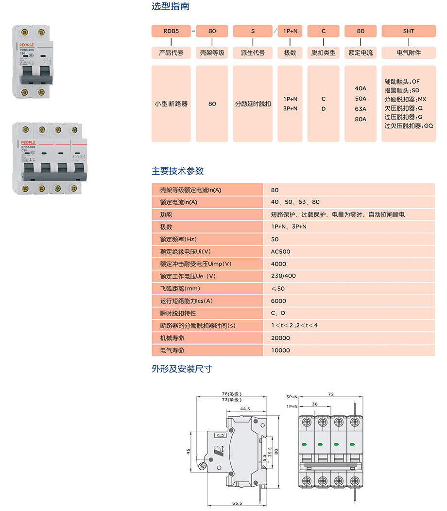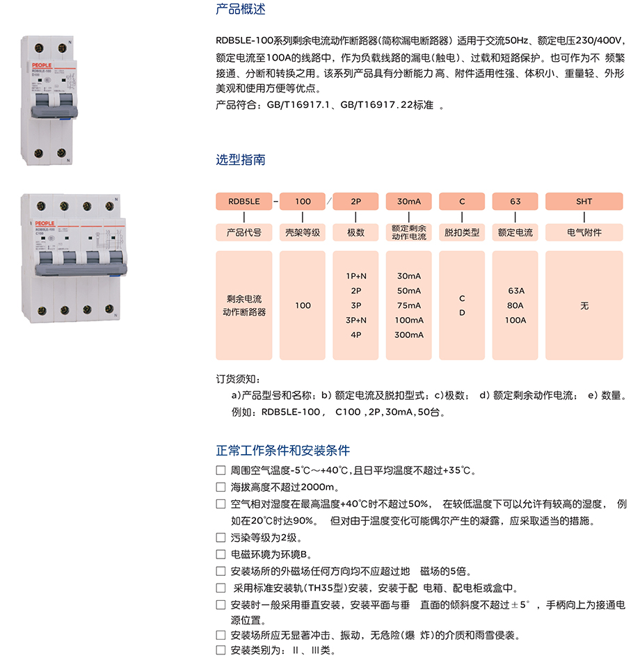 RDB5系列小型断路器主要用于交流50Hz,额定工作电压至400V,额定电流至125A,额定短路分断能力不超过10000A,还具有家用或类似场所用线路的过载和短路保护,在正常情况下作为线路不频繁转换的配电线路中。