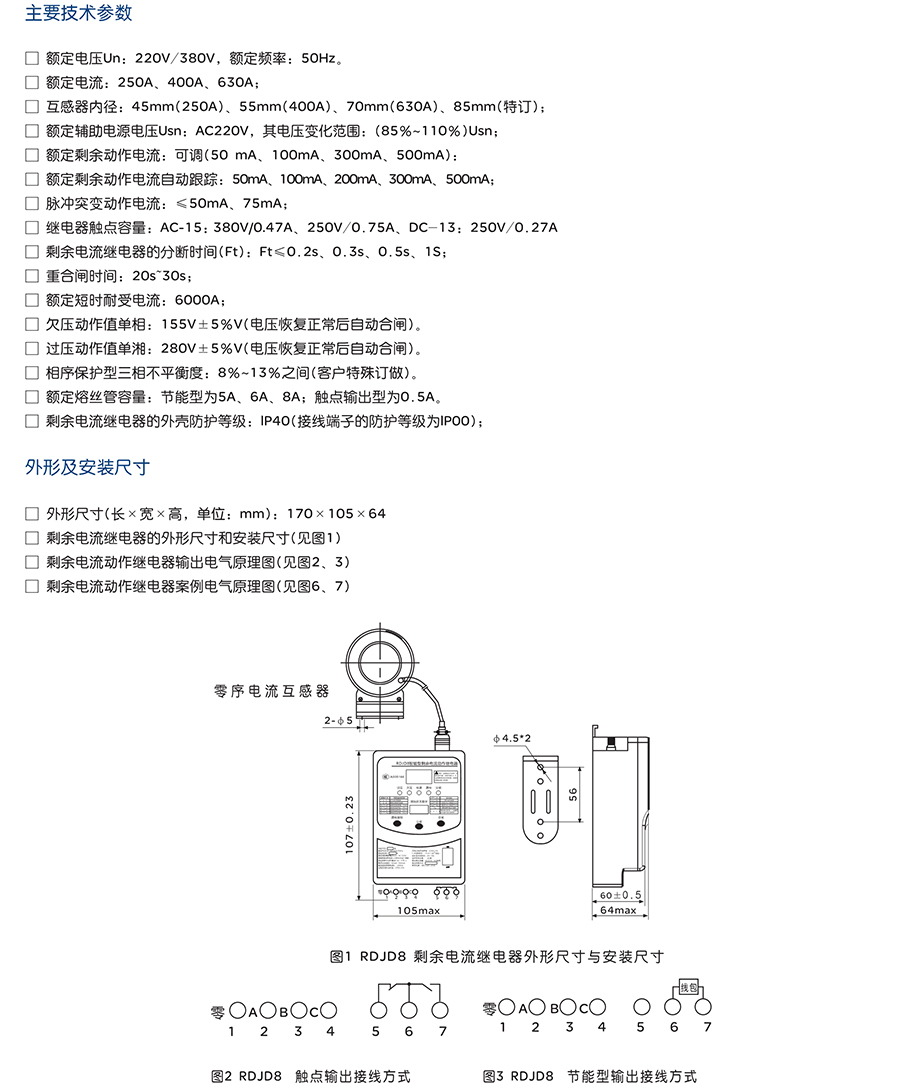 剩余电流动作继电器RDJD8-1A/250A(触点型)