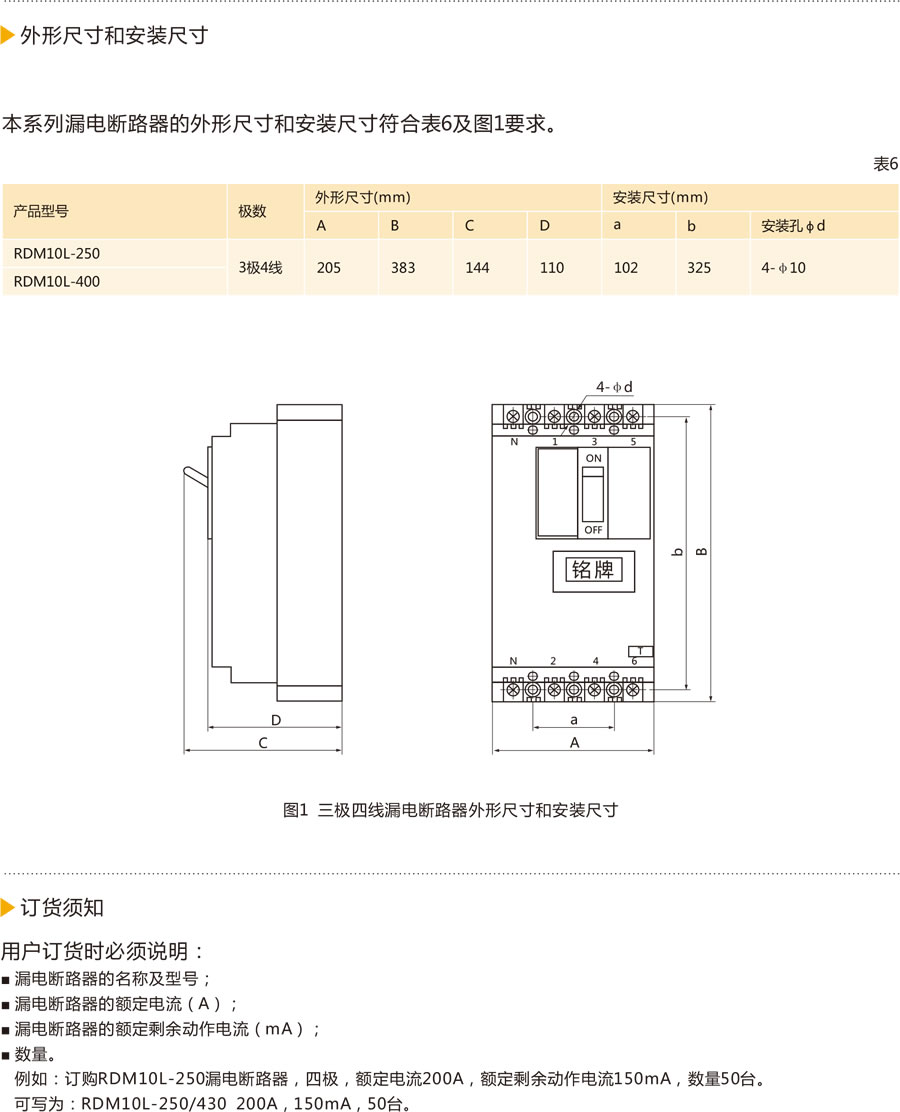 漏电断路器RDM10L-400/430 250A 200mA