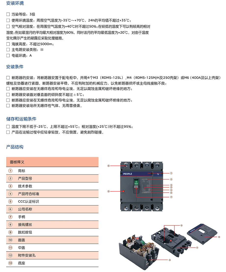 RDM5系列塑料外壳式断路器主要用于交流50Hz,额定绝缘电压1000V,额定工作电压400V