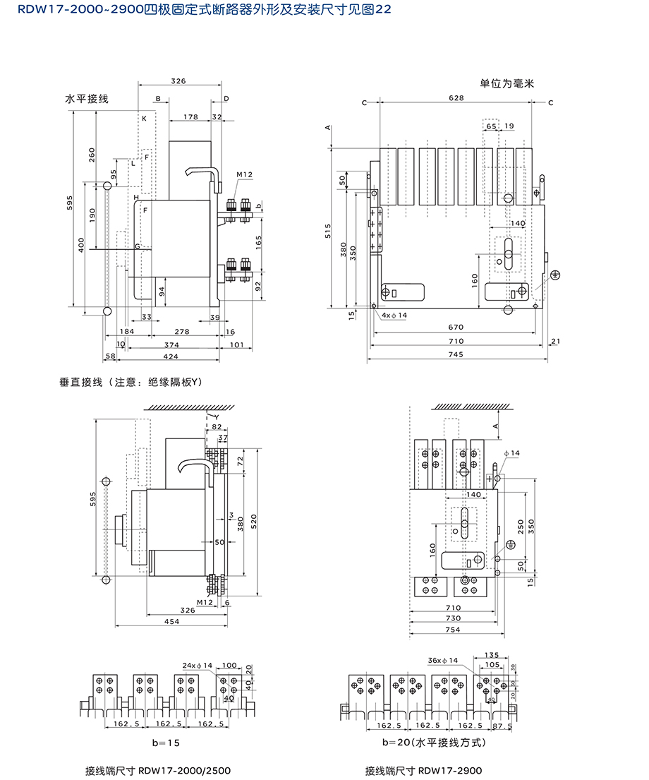| RDW17万能式断路器 | RDW17-2505/4 2900A电动快速固定水平 |