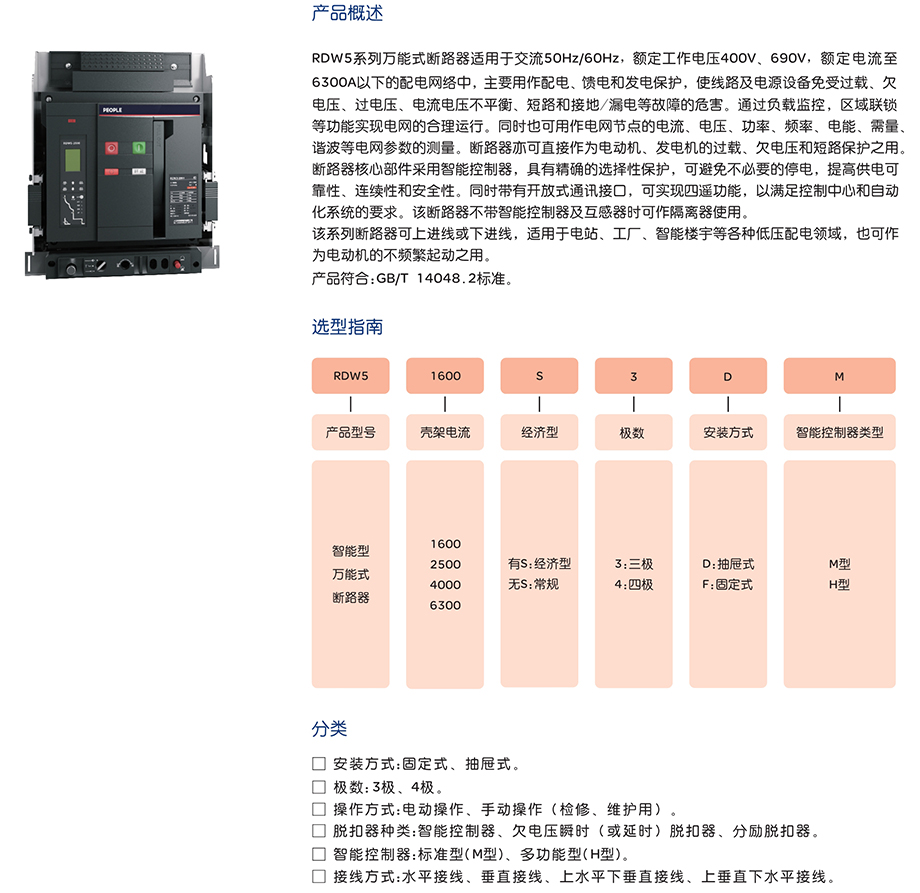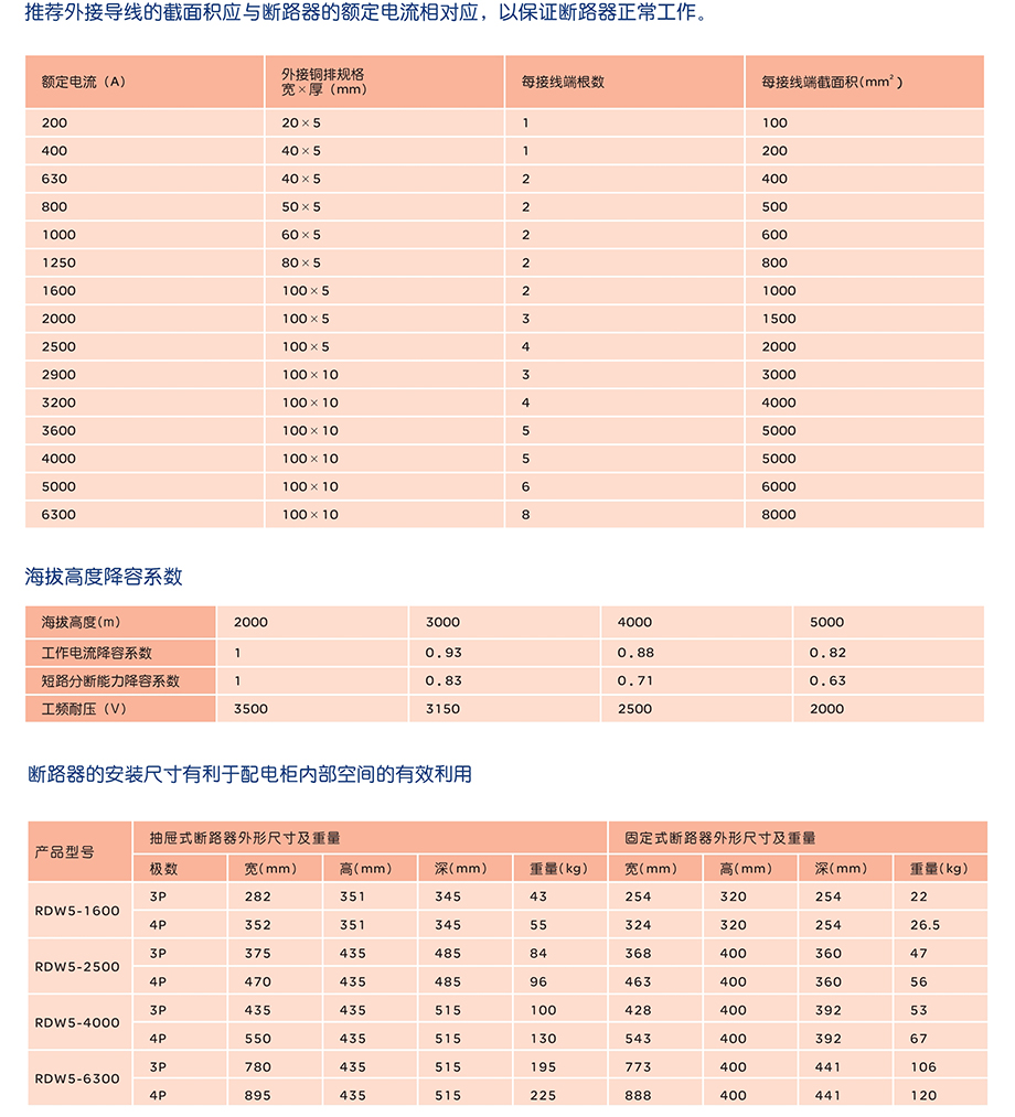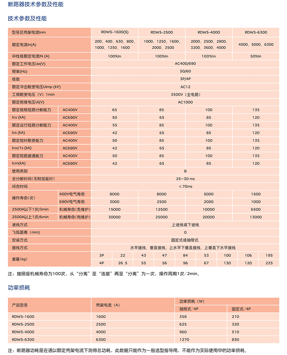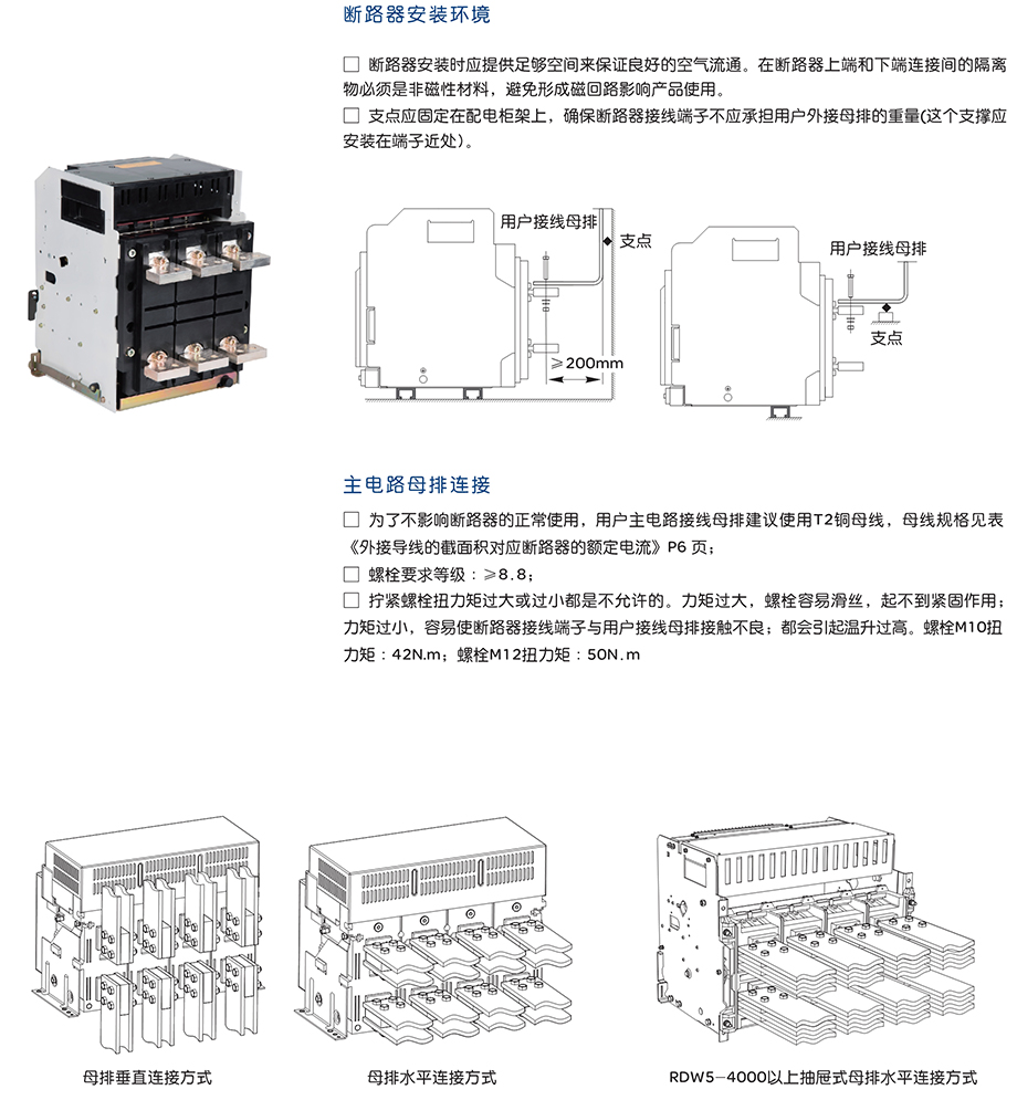 RDW5智能型万能式断路器RDW5-4000S/4 4000A固定式