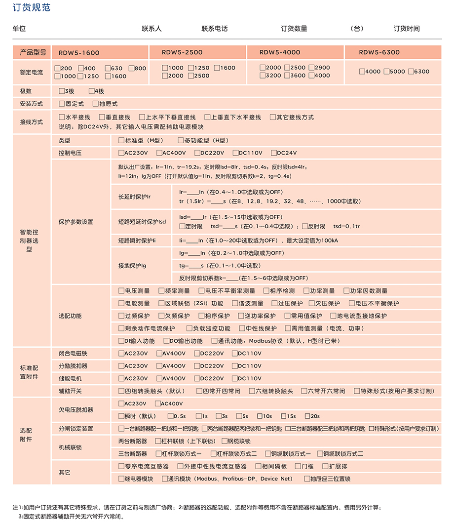 RDW5智能型万能式断路器RDW5-2500S/4 2000A固定式