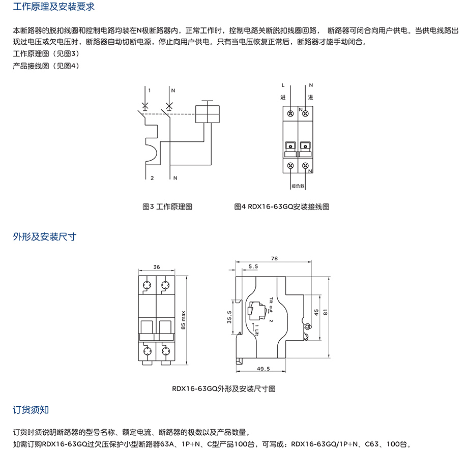 小型过欠压断路器RDX16-63GQ C6 3P+N