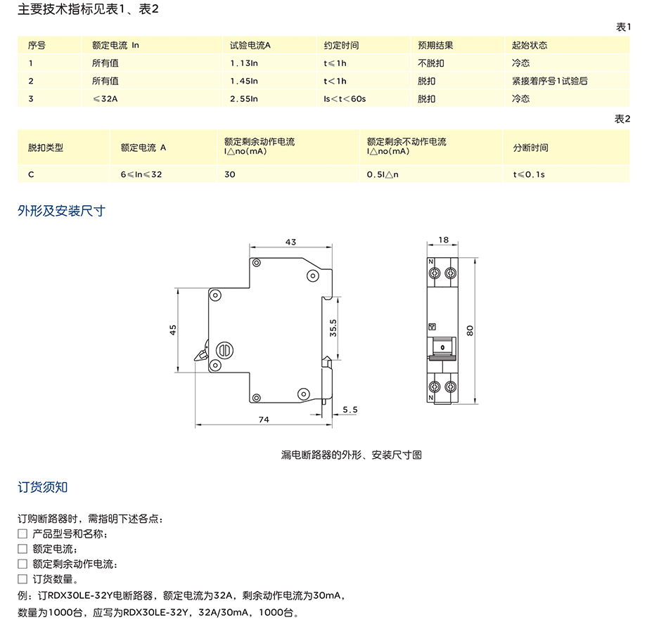 5. 中国人民电器 RDX30LE-32Y 系列剩余电流动作断路器