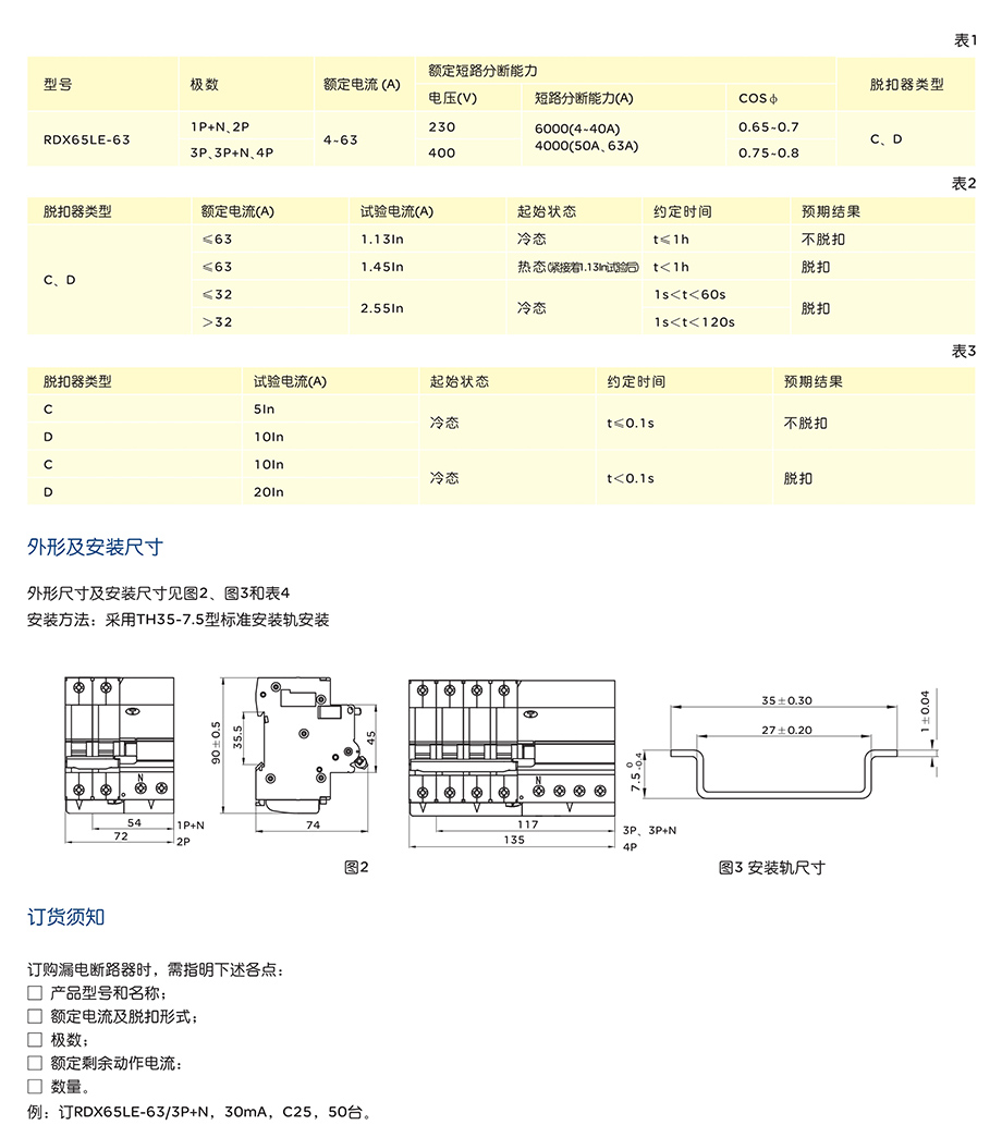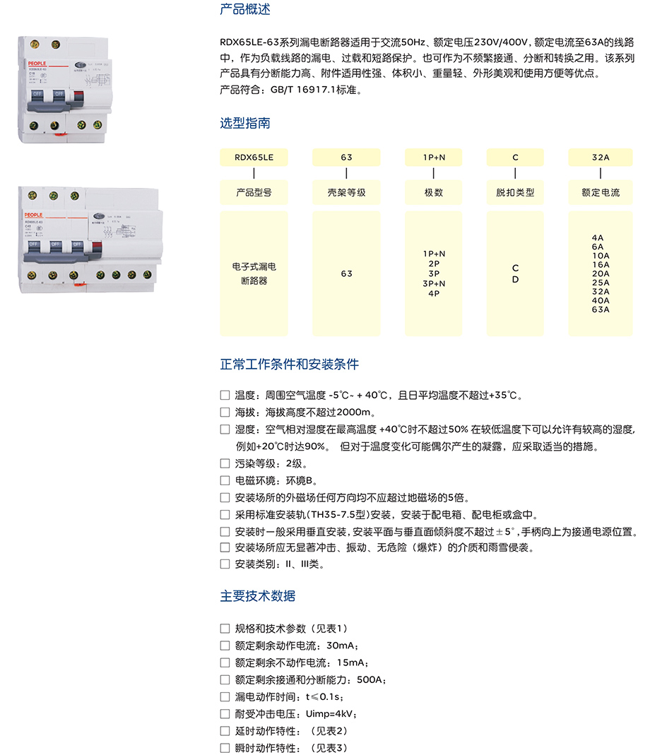 RDX65LE-63 系列剩余电流动作断路器