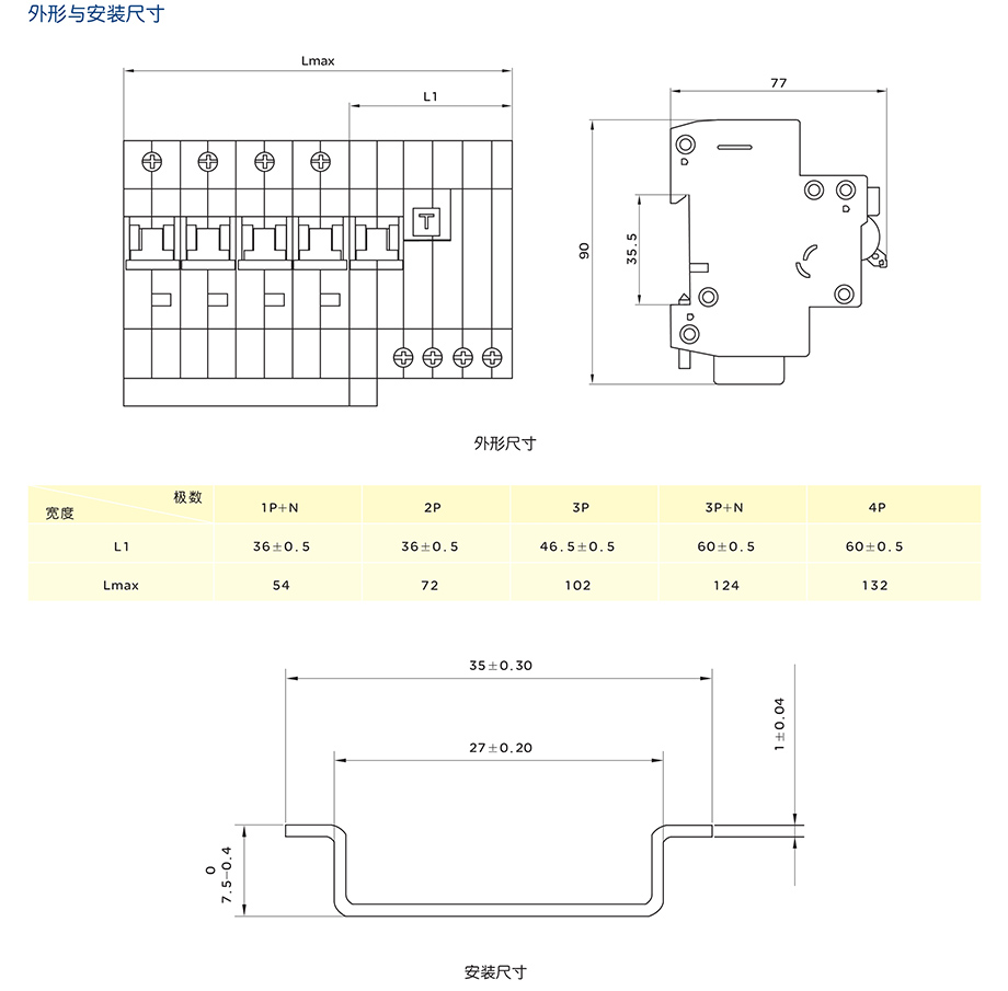 小型漏电断路器RDX6LE-63 C40 3P+N