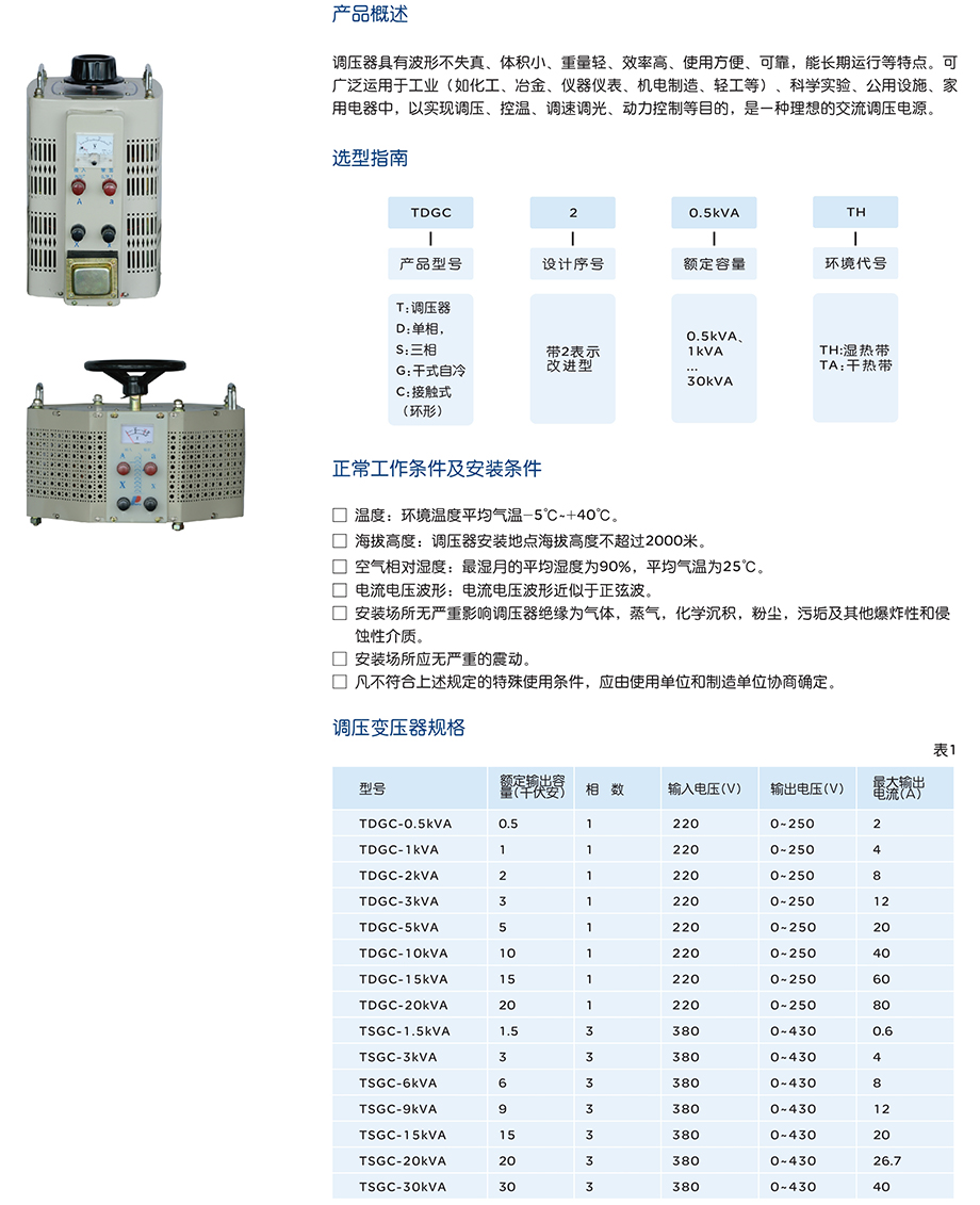 调压器TDGC-10kVA(0-300V)