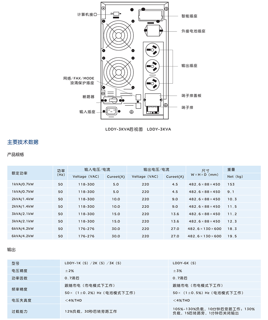 此系列UPS为在线式架构,正弦波输出。使用此系列UPS几乎可以完全解决多有的电源问题,如断电、市电高压、市电低压、电压瞬间跌落、减幅振荡、高压脉冲、电压波动、浪涌电压。谐波失真、杂波干扰、频率波动等电源问题。此系列UPS试用范围广,从计算机设备到通信系统行业自动设备都可以使用。