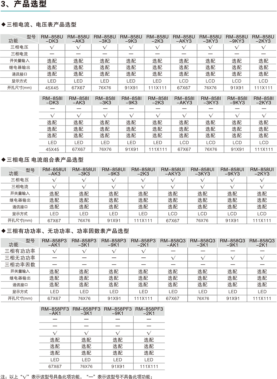 三相有功功率、无功功率、功率因数表 RM-858Q3-2K1