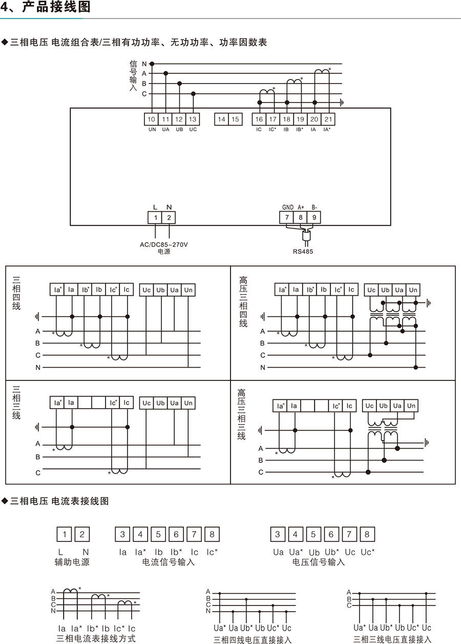 RTU协议),及继电器输出功能(实现“越限报警或遥控功能”):带RS-48数字接口中,采用标准Modbbus-RTU协议实现“遥测”功能,变比和通讯参数可通过仪表面板按键任意设置,使用灵活方便。