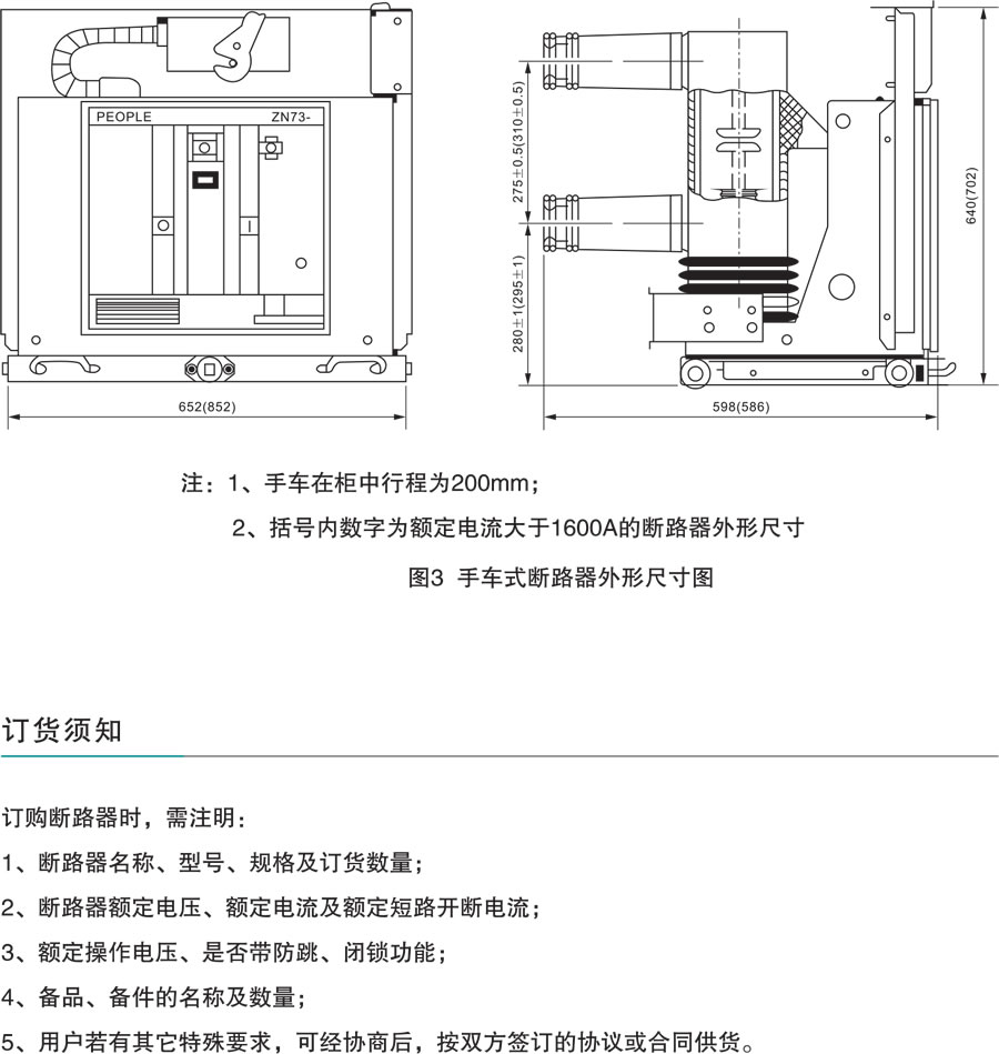 户内高压真空断路器ZN73-12/630-31.5固定侧装
