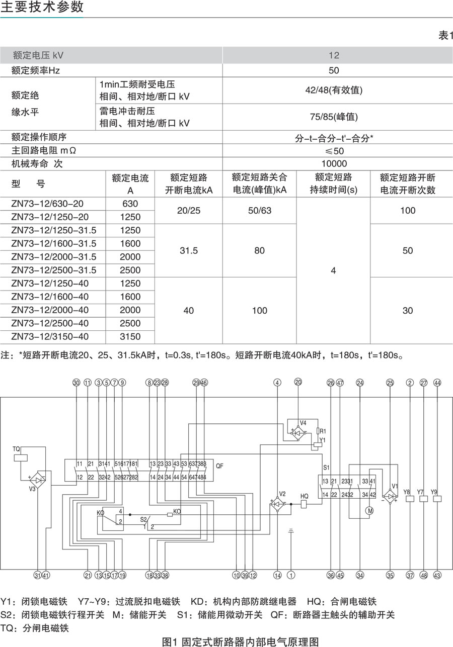 户内高压真空断路器ZN73-12/1250-31.5固定式带上连锁(无包装)
