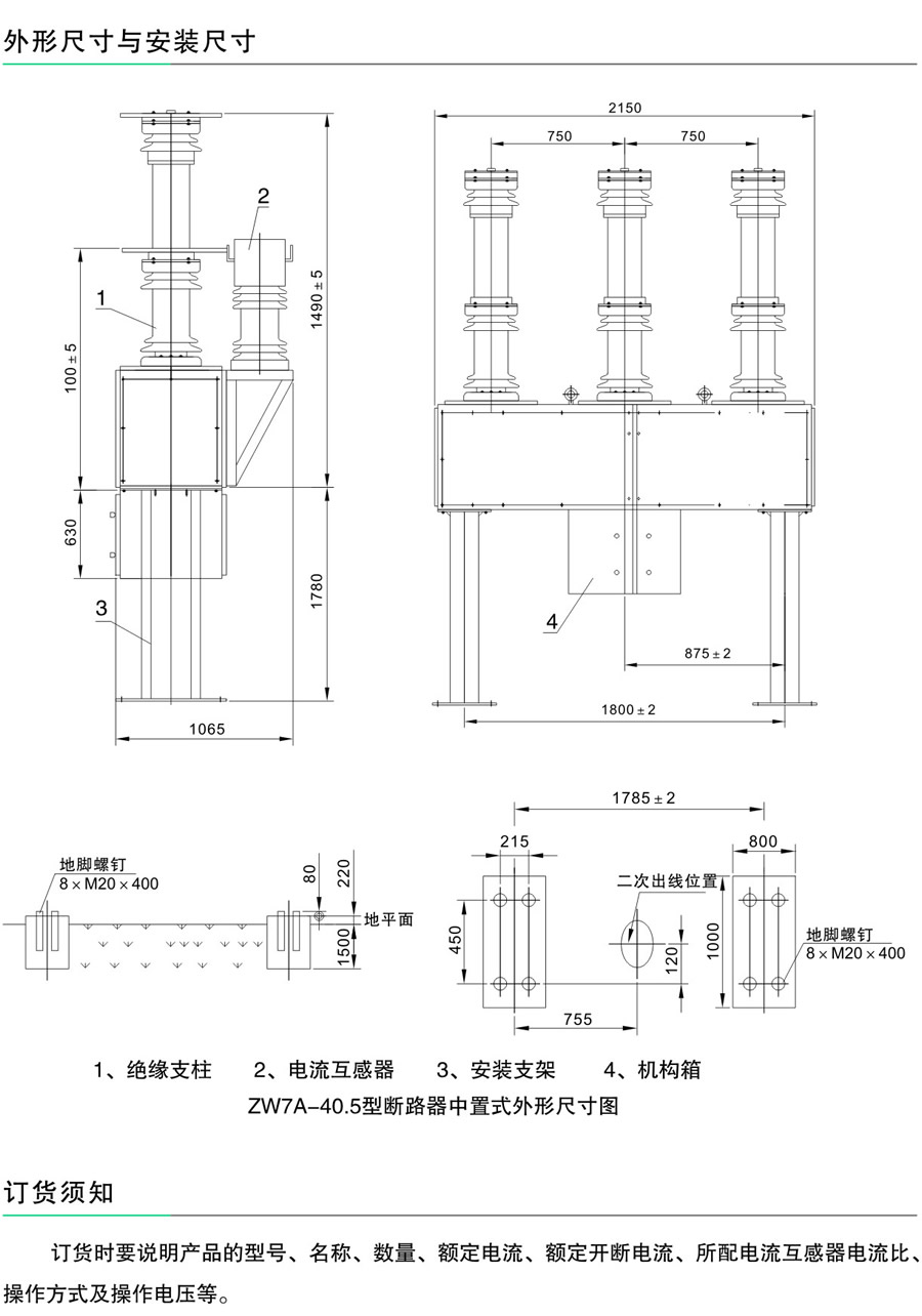 真空断路器ZW7-40.5/1250-31.5CT外置200.400.600/1