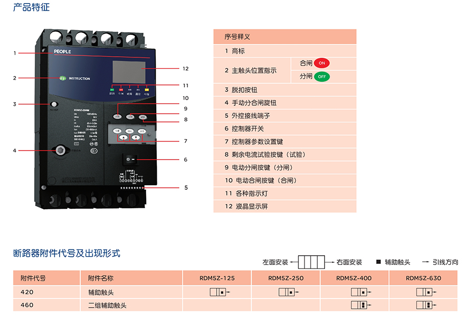 | RDM5Z剩余电流保护断路器(自动重合闸) | RDM5Z-400/H 160~400A液晶通讯型 |