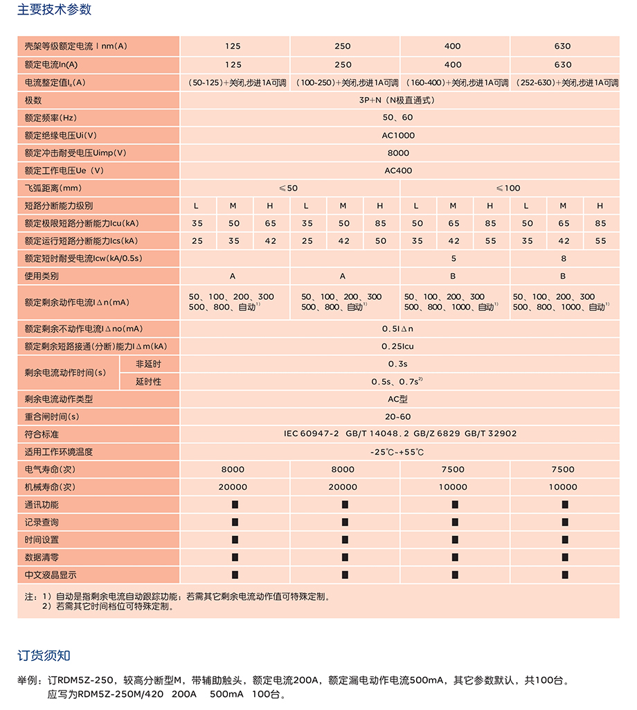 | RDM5Z剩余电流保护断路器(自动重合闸) | RDM5Z-250/L 100~250A液晶通讯型 |